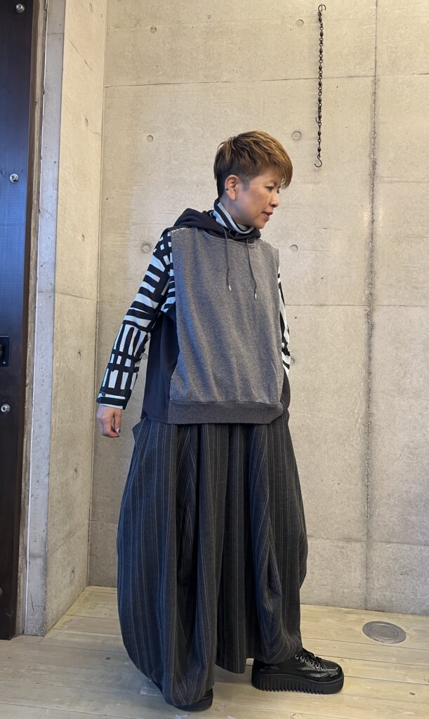 セットアップだと攻めまくっているので、別々の着用がいいかなと。。