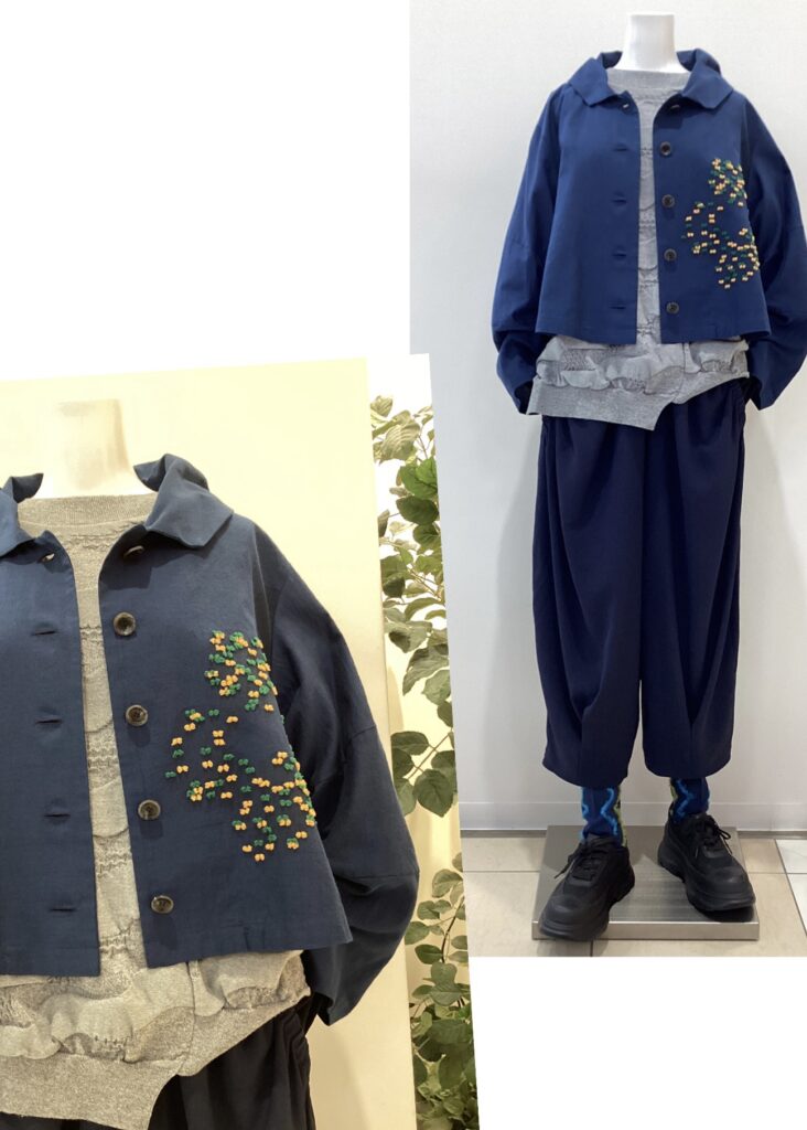 カラフルなつぶつぶフラワーが可愛らしく、たのしいデザインが目をひく慈雨のはおりもの。