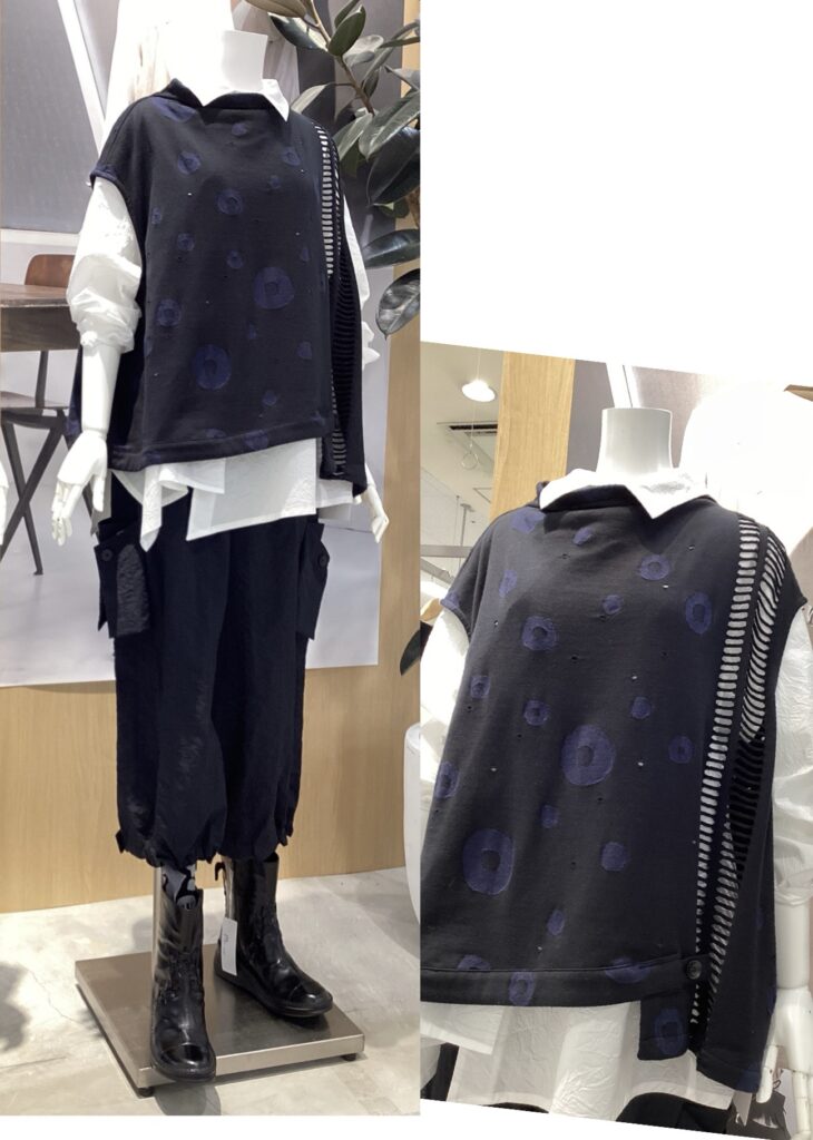 キレイ色が目を引く✨絶妙な色の重なりがポイントのベストは、1枚あれば重宝すること間違いなし!です。