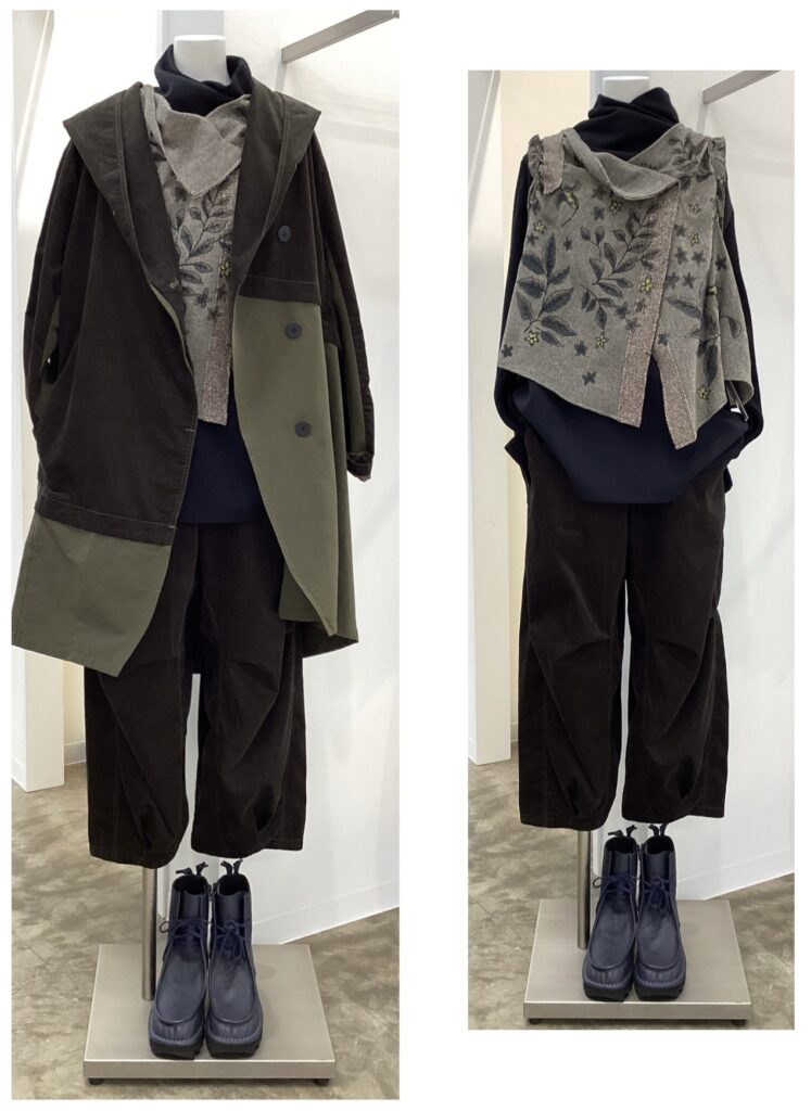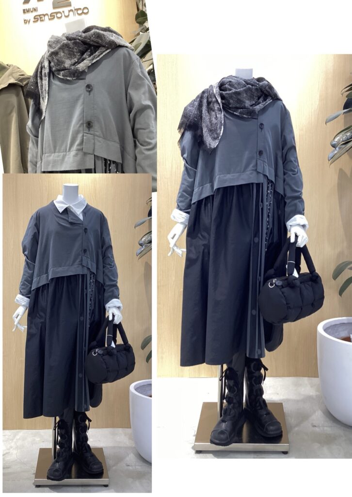 コンブシリーズ・・・特殊な生地を使用した人気シリーズから、コート、ドレス、パンツのご紹介です。