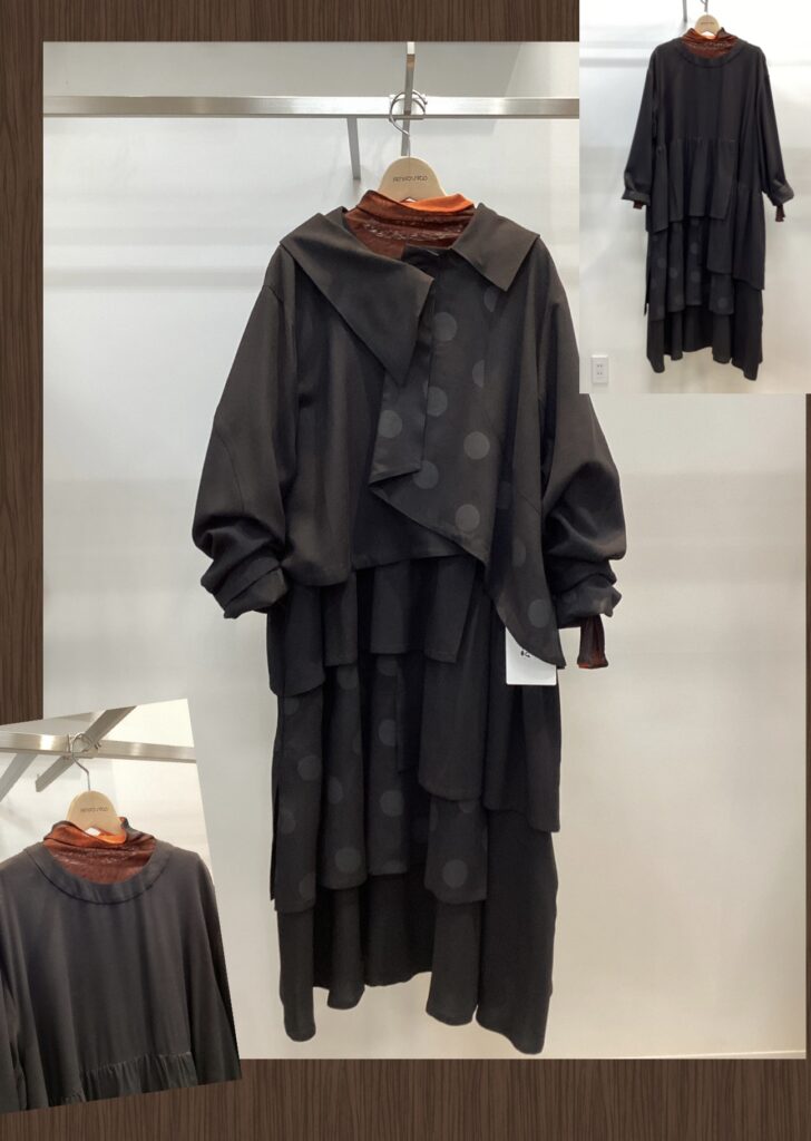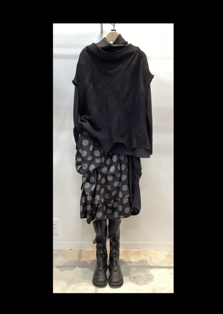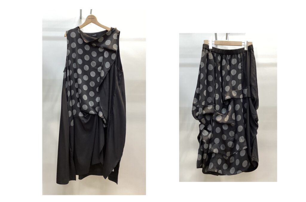 ドット柄と無地を組み合わせたアシメントリーなデザインがモード感UP✨