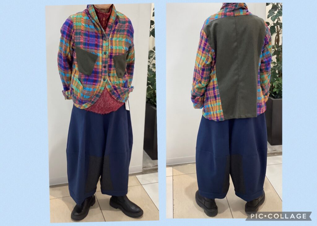 ポケットと背中部分に無地の切り替えが目をひきます。