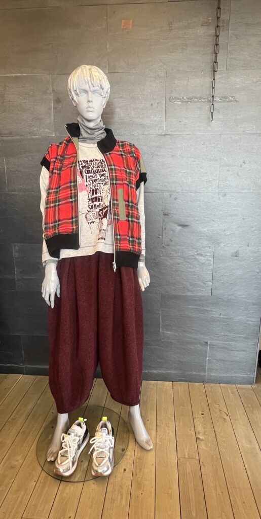落ち着いたボルドー系の圧縮ウールパンツをチョイス