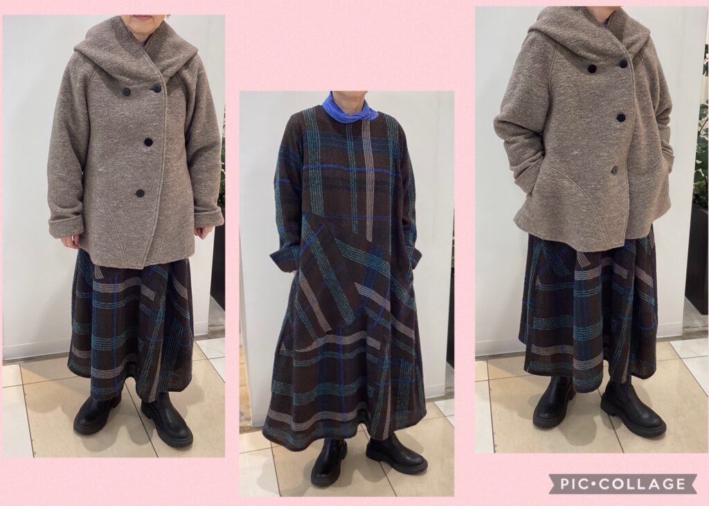コートとパンツはオチ感のある生地でシルエットが綺麗です。
