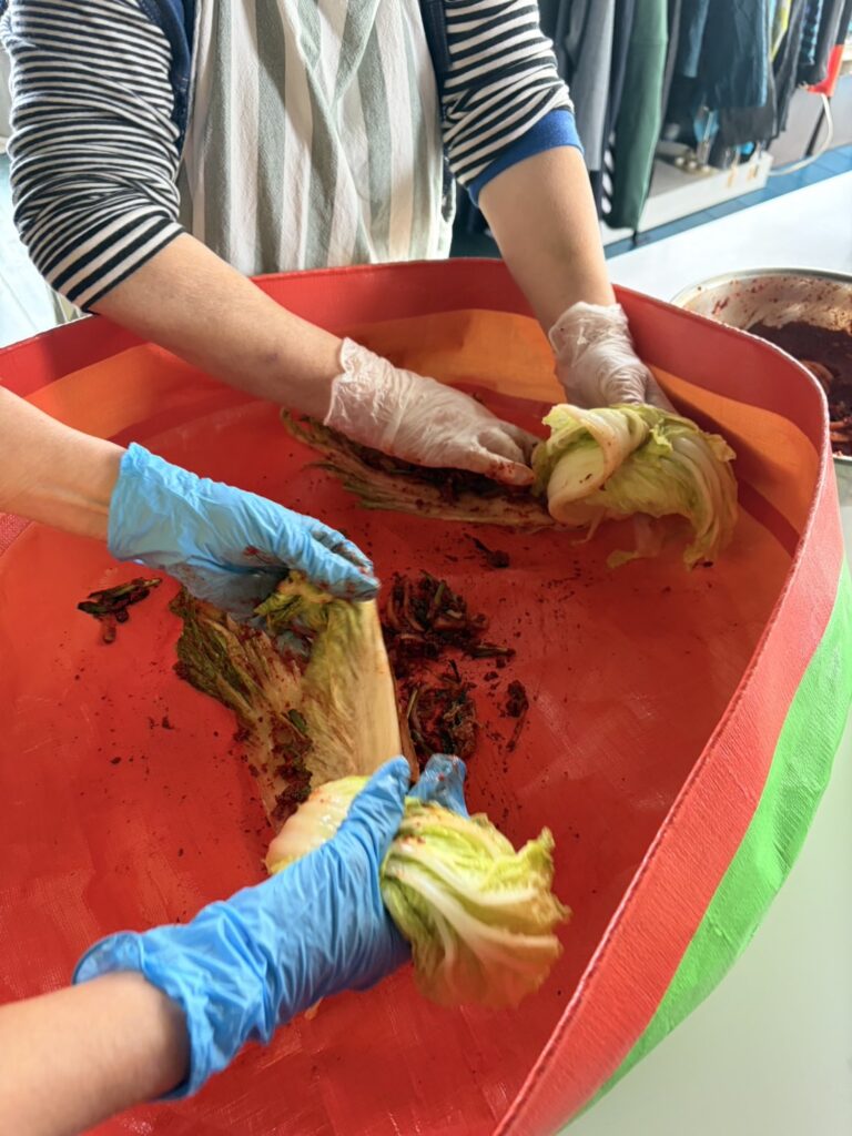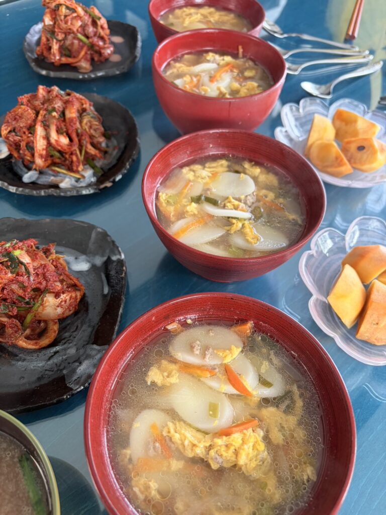 今回はアゲ先生をお迎えして、本場韓国のキムチ作りと、それを使ったトック(お正月に食べるお祝い膳)を作りました。