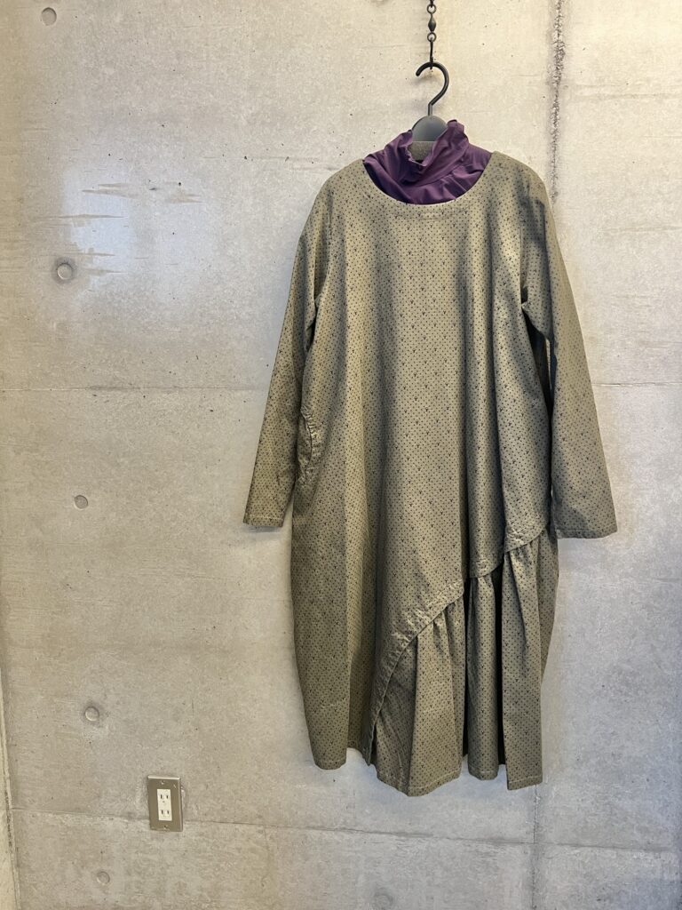 あたっか素材のカットソーとワンピースをあわせたコーディネート