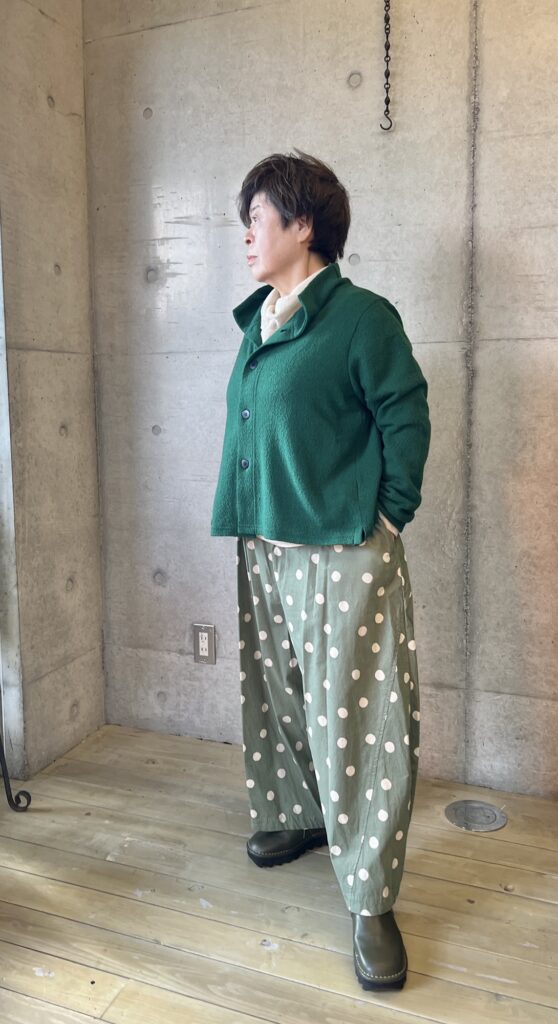 このパンツも全体のバランスでおさまってて主張しすぎないところがいいと思います