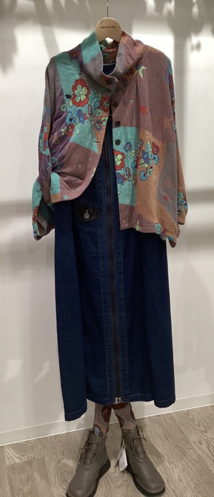 定番デニムジャンスカに和柄の羽織り伸縮性抜群✨