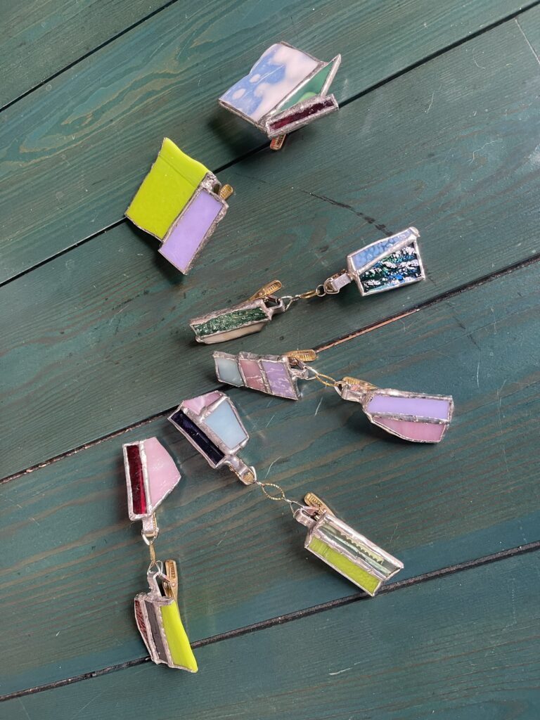 今回はガラスを使ってスカーフ止めを作りました。