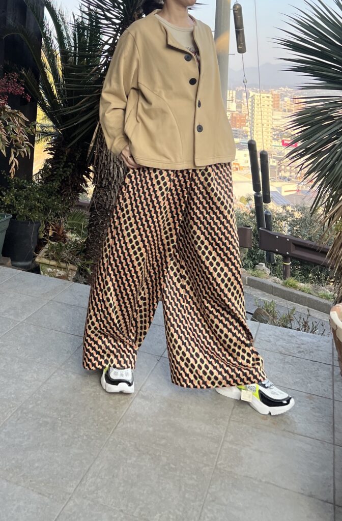 70年代、80年代を匂わす雰囲気の柄を使ったパンツ