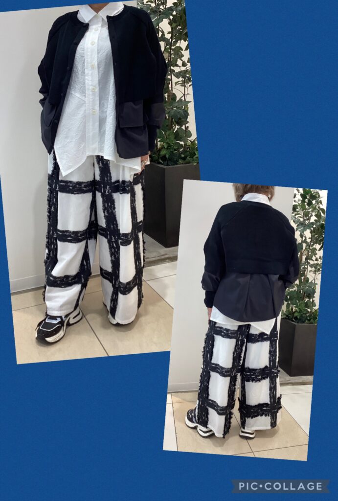 トレンドカラーのホワイトとブークレ記事(凸凹)使用のパンツ✨