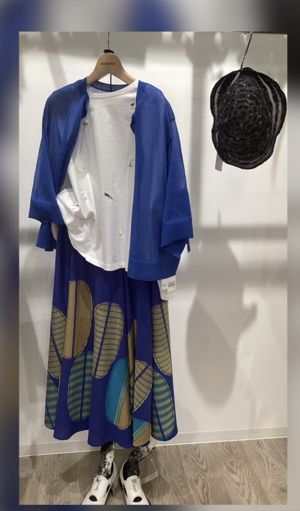 ブルー×白 パキッとした印象✨ スカートは慈雨♪